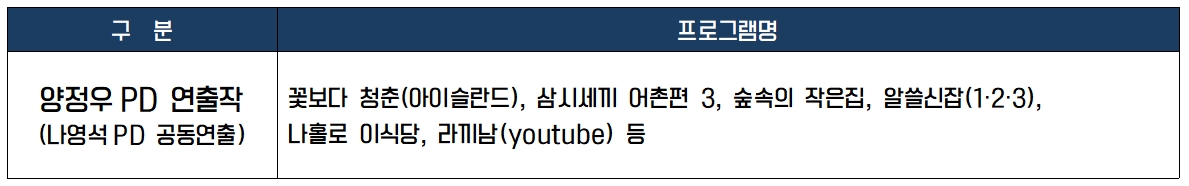 <알쓸범잡>의 연출을 맡고 있는 양정우 PD는 나영석 사단으로서 그간 과거의 방송들에서 가끔이나마 얼굴을 비쳐왔기 때문에 나영석 PD의 예능을 즐겨 봐 온 시청자들이라면 친숙할 것입니다. 양정우 PD는 서울대 출신으로 CJ E&M의 공채 1기 출신으로 과거 나영석 PD와 함께 신서유기’, ‘라끼남’, ‘알쓸신잡’, ‘숲속의 작은집등 다양한 예능 프로그램들을 연출해온 tvN의 대표 예능 PD 중 한 명입니다. 이번 프로그램의 경우에는 양정우 PD의 단독 연출작으로 더욱 기대가 되는 부분입니다.