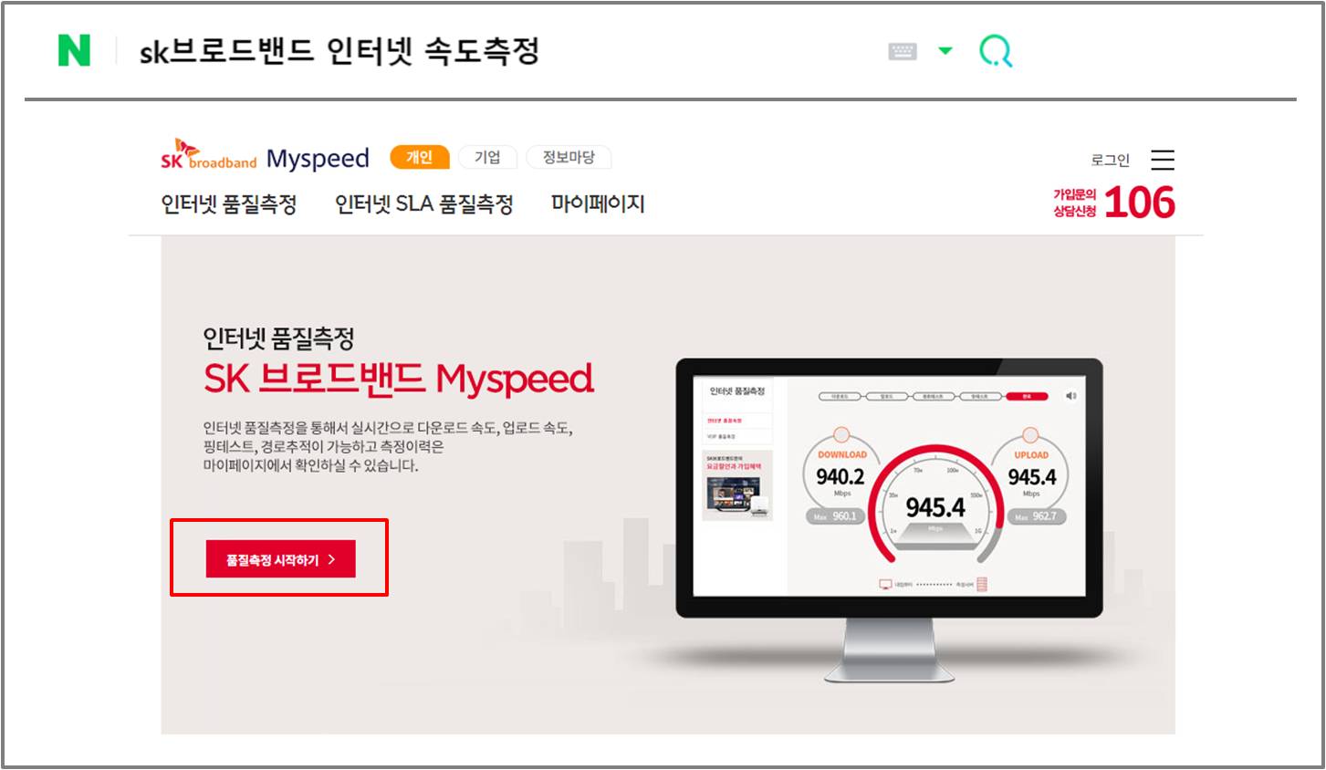 - SK브로드밴드 : SK브로드밴드 인터넷 속도측정으로 검색