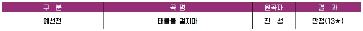 김호중 가수는 예선전을 하기에 앞서 ‘네순 도르마’를 먼저 선보였습니다. 이후 예선전에서는 진성의 ‘태클을 걸지마’를 불렀습니다. 기본적으로 성악을 하던 가수이기 때문에 트로트에서도 성악의 느낌이 있을 거라 예상했지만 완벽하게 트로트로서 곡의 느낌을 살려 모두를 놀라게 했습니다. 원곡자인 진성은 성악의 발성이 1%도 느껴지지 않는 무대였다며 감탄하였으며 소리의 귀재라고 극찬했습니다. 김준수는 주위에 성악을 기반으로 뮤지컬 배우를 하시는 분들이 많은데 성악 특유의 진성을 버리기 어려운 부분이라 생각하는데 무대에서 그러한 부분이 보이지 않았으며 고음에서는 성악가 특유의 풍부한 느낌을 살리는 무대였다고 평했습니다. 극찬을 받은 해당무대는 13인의 심사위원 모두의 선택을 받았으며 예선전의 모든 참가자를 통틀어서 1위만 받을 수 있는 眞(진)으로 선정되었습니다.